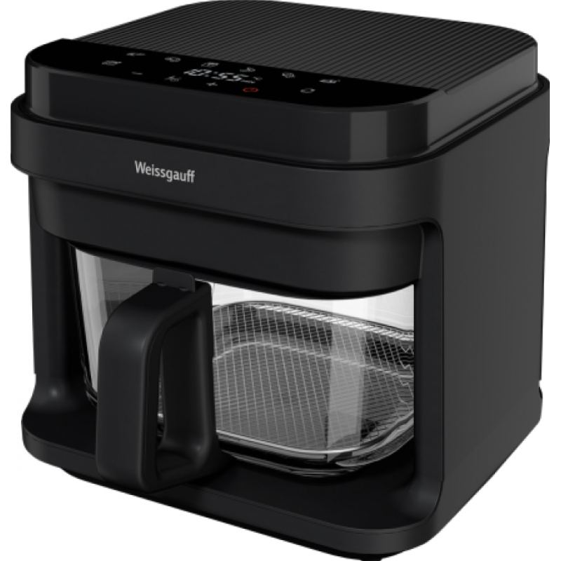 7 автоматических программ - Креветки, Стейк, Фри, Крылышки, Рыба, Птица, Разморозка предоставляют вам широкий ассортимент возможностей приготовления вкуснейших блюд!Объем 5,5 литров дает вам полную уверенность в том, что несмотря на компактные размеры этого аэрогриля, вы сможете разместить в нем сразу весь необходимый объем пищи, порадовав себя и своих близких изысканными блюдами, приготовленными на действительно ресторанном уровне.Мощность 1500 Вт - позволяет легко и быстро приготовить разнообразные блюда для всей семьи и обеспечивает оптимальный баланс между скоростью приготовления блюд и объёмом потребления электроэнергии.Ручной режим - предоставляет возможность самостоятельно устанавливать время и температуру приготовления. Это делает прибор универсальным и подходящим для создания разнообразных блюд, а также позволяет экспериментировать и открывать новые горизонты в кулинарии.Циркуляция воздуха 360° - позволяет горячему воздуху распределяться по всей камере прибора одинаково, благодаря этому продукты не пригорают и готовятся равномерно, сохраняя все соки, вкус и добиться вкусной хрустящей корочки, при этом не используя масло.Технология OilFree, позволяет готовить без добавления масла. Внутри рабочей камеры непрерывно циркулируют горячие потоки воздуха, которые так быстро и равномерно пропекают продукты, что внутри они получаются сочными и нежными, а снаружи покрываются золотистой хрустящей корочкой. Приготовленные блюда при помощи данной технологии сохраняют свой яркий вкус, аромат и полезные свойства!  Карбоновый нагревательный элемент обеспечивает быстрый и равномерный нагрев продуктов, что способствует эффективному и качественному приготовлению блюд.Таймер с автоотключением будет особенно удобен в случае, если вы хотите запрограммировать работу аэрогриля на требуемый промежуток времени с последующим автоматическим завершением нагрева!Полностью электронное сенсорное управление интуитивно понятное даже человеку, никогда ранее не работавшему с подобной техникой, сделает процесс запуска аэрогриля быстрым и лёгким!Функция автоотключения при снятии чаши во время работы переводит устройство в режим паузы, выключая вентилятор и нагревательные элементы. При возвращении чаши приготовление автоматически продолжится - это защитит вас и ваших детей при незапланированном снятии чаши.Стеклянная чаша в аэрогриле позволит вам наблюдать за процессом приготовления не вытаскивая чашу и точно контролировать степень готовности блюда. При создании своих устройств Weissgauff использует только экологически чистые материалы, ведь каждая деталь важна, когда речь идет о приготовлении по-настоящему вкусной и здоровой пищи.Книга рецептов в комплекте экономит время на поиск рецептов и позволяет сразу приступить к приготовлению. Удобная таблица мер и весов помогает правильно измерять и соблюдать пропорции при готовке блюд, что делает процесс приготовления более удобным и точным.Современный дизайн, делает этот аэрогриль не только функциональным устройством, но и по-настоящему восхитительным предметом интерьера, сочетающим в себе высокий стиль и благородство вашего вкуса!Комплектация устройства включает в себя - Аэрогриль, Чаша, Съёмная решётка, Подставка под горячее, Книга рецептов  которая позволит сразу приступи