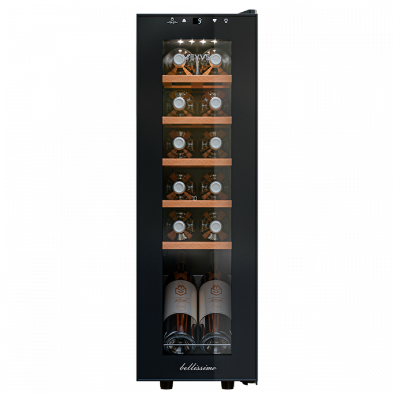 Макс. кол-во бутылок (бордо), шт. 12Кол-во температурных зон 1Тип охлаждения КомпрессорныйДиапазон температуры , °C от +5 до +12Вид охлаждения ДинамическоеТип установки ОтдельностоящийТип управления СенсорноеДиапазон влажности, % 60-80Уровень шума, дБ 30Энергопотребление, кВт/год 121Класс энергоэффективности AКлиматический класс SN / NЦвет корпуса ЧёрныйПеренавешиваемая дверь НетСтекло Двойное с УФ-фильтромРамка двери ЧёрнаяРучка двери УтопленнаяЗамок двери НетОбъем, л 35Количество полок, шт. 6 (5 + 1 демонстрационная)Тип полок ВыдвижныеМатериал полок Бук + хромированная проволокаПодсветка ДаАвтоматическая разморозка ДаМощность, Вт 70Высота (мм) 803Ширина (мм) 252Глубина (мм) 445Размер упаковки (ВxШxГ), мм 836 х 336 х 533Вес нетто, кг 17Вес брутто, кг 19Хладагент R600a (18 г)Производитель MEYVEL (Италия)Срок гарантии 2 года