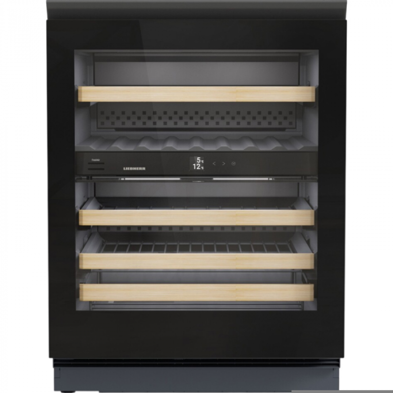 Встраиваемый винный шкаф Liebherr UWgb 3632-20 001 относится к серии Vinidor, обладает объем объемом 98 л и вмещает до 32 бутылок. Устройство позволит хранить коллекцию вин в правильных условиях и сохранить их качество.  Это модель с двумя температурными зонами. Нужные параметры работы устанавливаются при помощи сенсорной панели Touch и отображаются на встроенном цифровом дисплее. Бутылки размещаются горизонтально. Полки легко выдвигаются и предоставляют свободный удобный доступ.  Дверь представляет собой стеклопакет, который обеспечивает эффективную термоизоляцию и защищает содержимое от ультрафиолета — солнечные лучи могут негативно сказаться на качестве вин. Рамка двери GlassBlack выполнена из черного стекла, ручка встроенная — винный шкаф выглядит лаконично и стильно и гармонично впишется практически в любой интерьер.Тип: Встраиваемый винный шкафМаксимальное количество бутылок 0.75 л:32Освещение: ДаИндикатор открытой двери: НетПолезный объём: 98 лКлиматический класс: SN STКласс энергопотребления:  FГодовое энергопотребление:  105Уровень шума: 36 дБМатериал полок для хранения:  ДеревоКоличество полок:  5Цвет: ЧёрныйГабариты (ШхГхВ): 600x580x880 ммВес: 49 кг