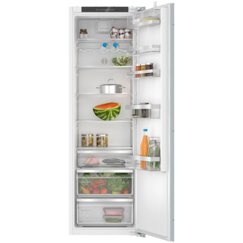 Общий объем холодильника: 310 лТип управления: электронныйКласс энергопотребления: DКлиматический класс: SN-ST (от +10°С до +38°С)Количество компрессоров: 1Годовое потребление энергии: 91 кВтч5 полок из стекла, 4 из них регулируемые4 дверные полкиЗона свежести VitaFreshLED освещениеSuperCooling1 решетка для бутылокНаправление открывания двери: вправоПеревешиваемые двериПредупреждающий сигнал открытия двериДисплейУровень шума: 34 дБГабариты (ВxШxГ): 177.2x55.8x54.8 смВес: 57.2 кг