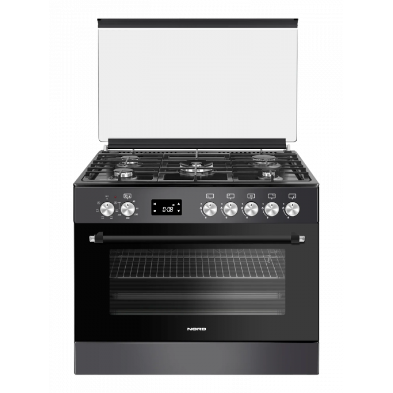 Тип Плита газоэлектрическаяТаймер Электронный с дисплеемВысота, см 88.5Гриль ЭлектрическийШирина, см 90Вертел ЕстьГлубина, см 60Электророзжиг ЕстьВес Нетто, кг 67Автоподжиг конфорок ЕстьУправление ЭлектронноеРешетки ЧугунныеТемпературный режим, °С 50-250Тип газа NG20Освещение Есть (25 Вт)Давление газа, мбар 20Объем духовки, л 110Категория газа II 2H3B/PКоличество конфорок 5Присоединительная резьба газопровода G1/2Тип варочной поверхности ГазовыйВ комплекте 2 противня (67,4*38,5*4,57 см) + хромированная решеткаТип духовки ЭлектрическийДвухконтурная газовая конфорка 1Кол-во режимов духовки 6Верхняя крышка СтекляннаяНижний электроТЭН ЕстьГаз-контроль конфорок ЕстьВерхний электроТЭН ЕстьЯщик для хранения посуды ЕстьКонвекция Есть, двойнаяЦвет ГрафитовыйТермостат ЕстьМатериал Эмалированный металлМакс. потребляемая мощность, Вт 3394Страна производства ТурцияДлина сетевого шнура, м 1,6Гарантийный срок 1 годДиапазон номинальных напряжений, В 220-240Бренд NORDЧастота тока, Гц 50/60