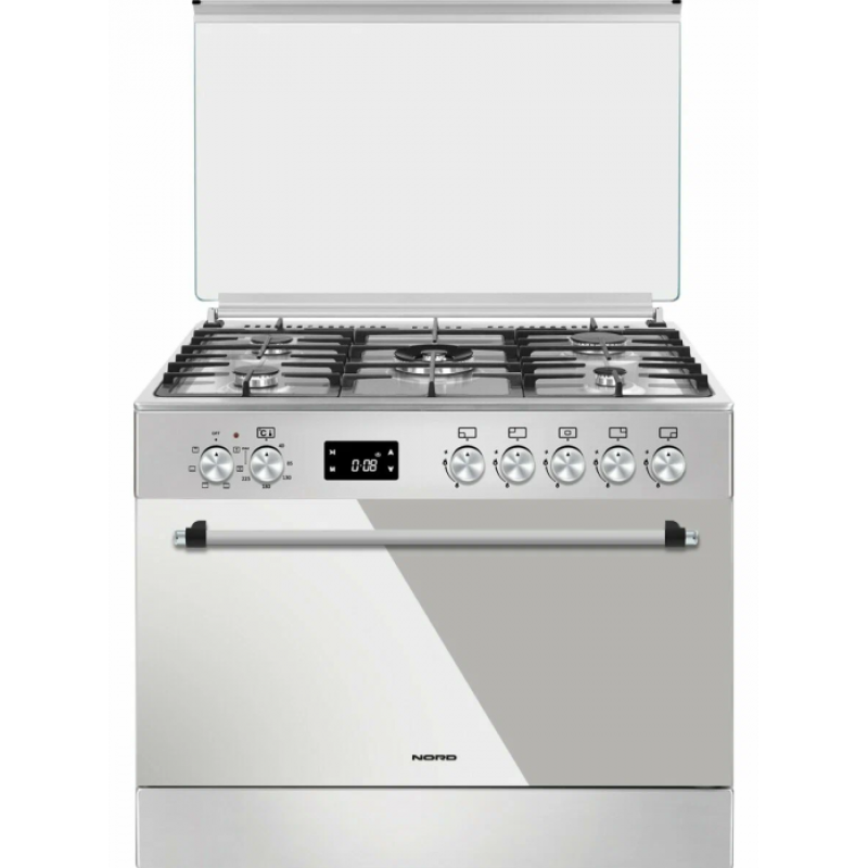Тип Плита газоэлектрическаяТаймер Электронный с дисплеемВысота, см 88.5Гриль ЭлектрическийШирина, см 90Вертел ЕстьГлубина, см 60Электророзжиг ЕстьВес Нетто, кг 67Автоподжиг конфорок ЕстьУправление ЭлектронноеРешетки ЧугунныеТемпературный режим, °С 50-250Тип газа NG20Освещение Есть (25 Вт)Давление газа, мбар 20Объем духовки, л 110Категория газа II 2H3B/PКоличество конфорок 5Присоединительная резьба газопровода G1/2Тип варочной поверхности ГазовыйВ комплекте 2 противня (67,4*38,5*4,57 см) + хромированная решеткаТип духовки ЭлектрическийДвухконтурная газовая конфорка 1Кол-во режимов духовки 6Верхняя крышка СтекляннаяНижний электроТЭН ЕстьГаз-контроль конфорок ЕстьВерхний электроТЭН ЕстьЯщик для хранения посуды ЕстьКонвекция Есть, двойнаяЦвет ГрафитовыйТермостат ЕстьМатериал Эмалированный металлМакс. потребляемая мощность, Вт 3394Страна производства ТурцияДлина сетевого шнура, м 1,6Гарантийный срок 1 годДиапазон номинальных напряжений, В 220-240Бренд NORDЧастота тока, Гц 50/60