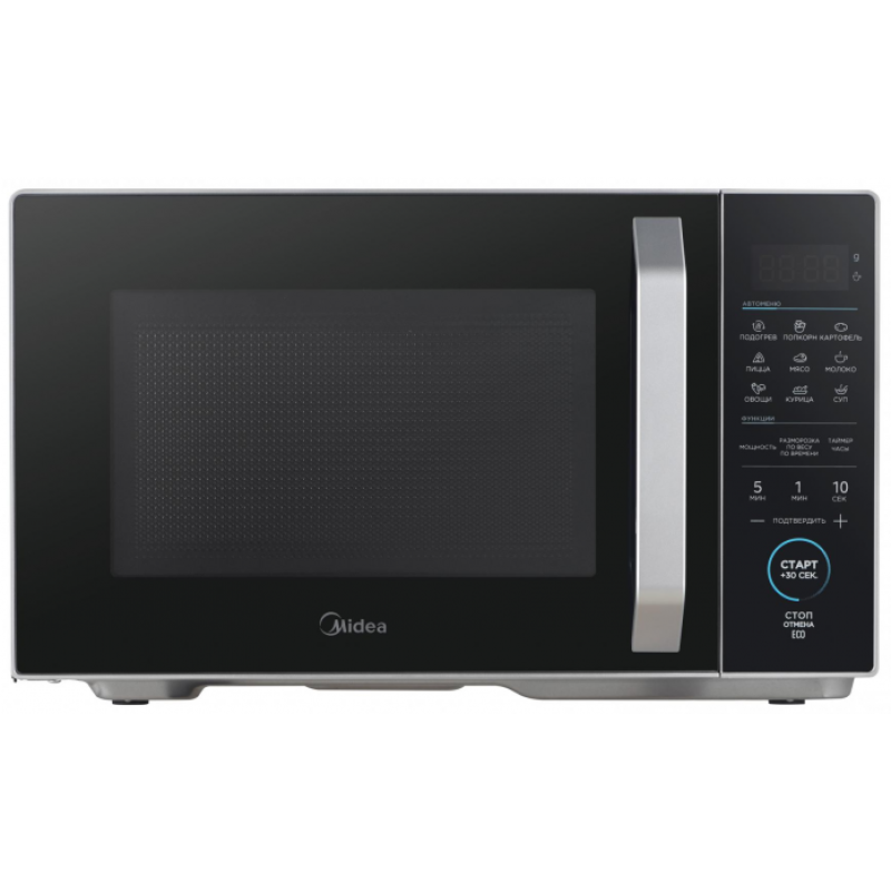 Тип  СолоЦвет корпуса  СеребристыйУправление  ЭлектронноеЧастота, Гц  50Таймер  ДаПотребляемая мощность, Вт  1250Объем камеры, л  25Цвет дверцы  СерыйТип внутреннего покрытия  Эмаль легкой очистки XpressCleanМощность микроволн, Вт  800Открывание дверцы РучкаДиаметр поворотного стола, мм  288Количество уровней мощности 5Макс время таймера, мин 95Установка времени  ДаНапряжение, В  230Количество программ автоматического приготовления  8Дисплей ДаВнутренняя подсветка  ДаЗащитная блокировка от детей  ДаБыстрый старт  ДаРазмораживание по весу  ДаРазмораживание по времени  ДаПоэтапное приготовление  ДаГабариты, мм 462х381х284  Вес нетто, кг 12.6