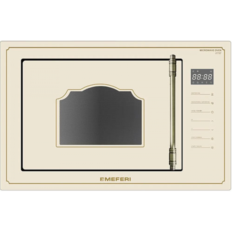 Инверторная технология: нетТип: солоОбъем: 25 лПоворотный стол: даДиаметр поворотного стола: 31.5 смПотребляемая мощность: 1450 ВтМощность микроволн: 900 ВтРежимы работы:Количество режимов работы: 8РазмораживаниеУправление и функции:Тип управления: сенсорноеОткрывание дверцы СВЧ: ручкаНаправление открывания дверцы: влевоТаймер: естьДополнительная информация:Материал фасадной панели: закаленное стеклоМатериал корпуса: металлТип освещения: галогеновоеВес: 18 кгЦвет: бежевыйКомплектация:Печь микроволновая встраиваемаяИнструкция по эксплуатацииГарантийный талонГабариты (ВхШхГ): 38.6x59.5x37 см