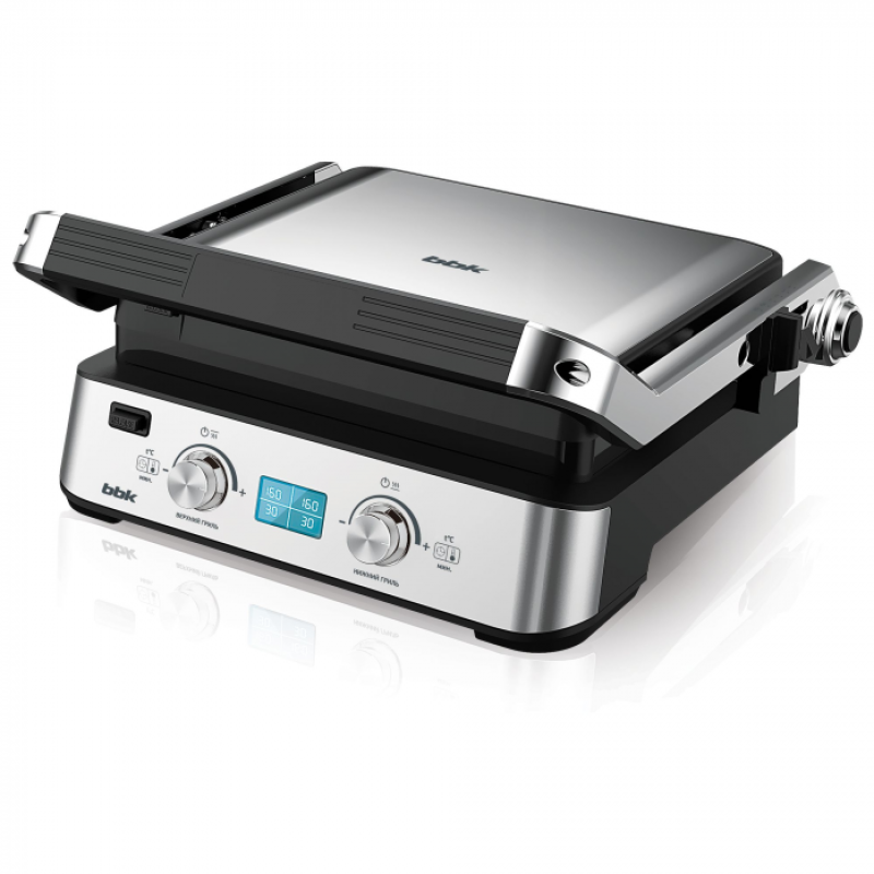 Тип ЭлектрогрильЗвуковой сигнал  ДаИндикатор питания  ДаПотребляемая мощность (Вт)  2000Размер рабочей поверхности (мм)  260x290Тип управления  ЭлектронныйМинимальная температура (°C)  160Максимальная температура (°C)  220LED-дисплей ДаЗащита от перегрева ДаВозможность открытия на 180°  ДаАвтоматический разогрев  ДаРаздельный нагрев  ДаРегулировка уровня жара  ДаУстановка времени приготовления  ДаЭлектрический гриль 1Съемная верхняя форма  1Съемная нижняя форма  1Маслосборник  1Длина шнура питания (см)  100Цвет корпуса Черный/металликСъемные панели ДаМатериал корпуса Нержавеющая стальМатериал рабочей поверхности Антипригарное покрытиеШирина (мм)  365Высота (мм)  180Глубина (мм)  368Вес (нетто) (кг)  5.15
