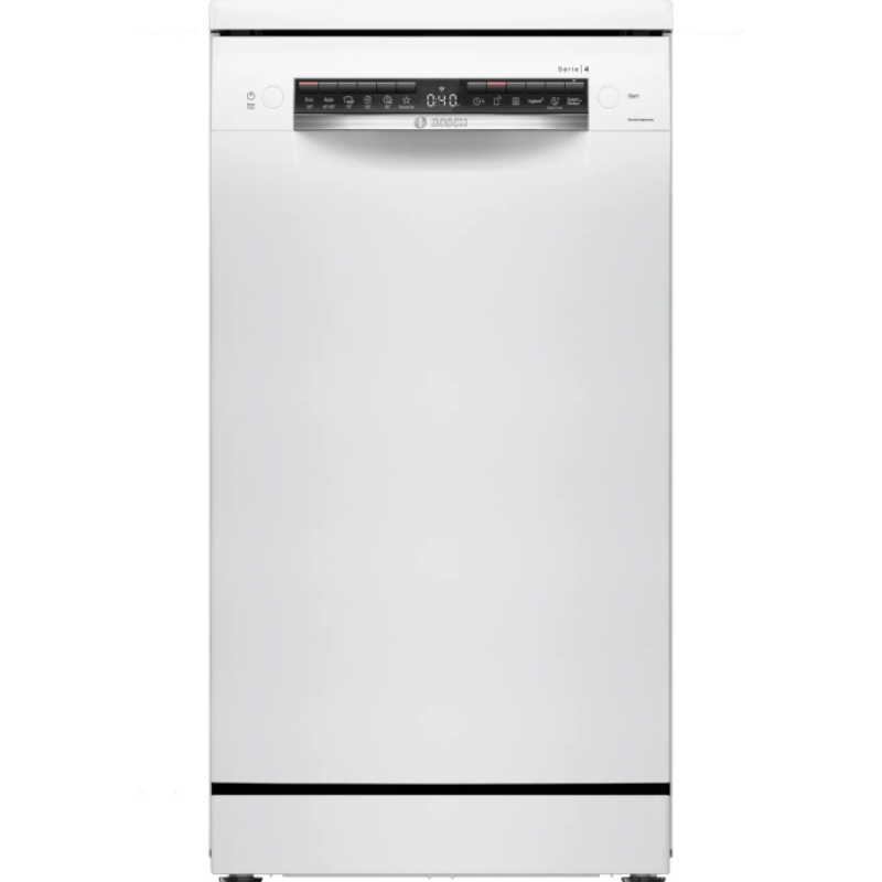 Тип: посудомоечная машина узкаяТип установки: отдельностоящая с возможностью встраиванияВместимость: 10 комплектовОсновной цвет прибора: белыйТип управления: электронноеДисплей: даОтсрочка старта: даЭнергоэффективность: EУровень шума: 46 дБСистема сушения: теплообменникЗащита от воды: AquaStopНаличие третьего короба: да (для столовых приборов)Количество складных держателей в нижней корзине: 2Количество подстаканников в верхней корзине: 1Переставляемый верхний короб: даРегулировка высоты третьего короба: даВысота съемной рабочей поверхности: 30 ммГлубина при открытой на 90° дверце: 1155 ммПрограммы:  Экономичная, Автоматическая 45-65°C, Интенсивная 70°, Quick L, Быстрое мытье 45°C, Персональная программаГлубина: 60 смШирина: 45 смВысота: 84.5 смВес нетто: 39.4 кгВес брутто: 42 кг