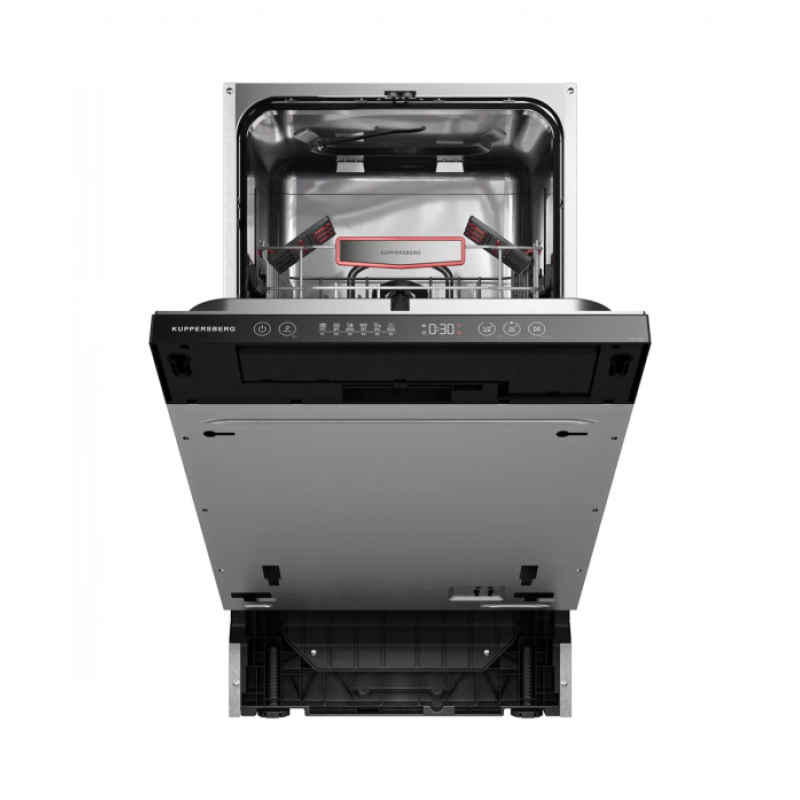 Встраиваемая посудомоечная машина Kuppersberg GHS 4520 воплощает современный дизайн и продуманную функциональность, что делает ее идеальным решением для любой кухни. Черная панель управления придает технике стильный и лаконичный вид, который впишется в интерьер, выполненный в любом цветовом решении.Корпус рабочей камеры выполнен из нержавеющей стали, что гарантирует долговечность, устойчивость к коррозии и легкость в уходе. Вместимость устройства составляет 10 комплектов посуды, что идеально подходит для среднестатистической семьи. Два уровня корзин обеспечивают удобное размещение различных видов посуды: верхняя корзина оснащена складными полками для тарелок и регулируется по высоте, что позволяет оптимизировать пространство под крупногабаритные предметы. Также предусмотрены полки для чашек и бокалов, а корзина для столовых приборов способствует аккуратному хранению мелких предметов, предотвращая их перемещение во время цикла мойки.Управление осуществляется электронным способом через цифровой дисплей, обеспечивающий удобный и интуитивно понятный выбор программ и режимов. В наличии семь стандартных программ, включая экологичный режим, интенсивное мытье при 65-70°С, быструю мойку при 35-50°С, стекло, автоматическую программу с температурой 45-65°С, замачивание и универсальный режим, что позволяет подобрать оптимальный цикл для любого типа загрязнений и посуды.Функция отсрочки запуска с диапазоном от 1 до 24 часов дает возможность запустить мойку в наиболее удобное время, учитывая график пользователя и тарифы на электроэнергию. Режим половинной загрузки позволяет экономно использовать воду и электроэнергию при небольшом объеме посуды.Безопасность эксплуатации гарантируется наличием защиты от детей, которая блокирует случайное изменение настроек, а частичная защита от протечек предупреждает возможные аварийные ситуации. Электронная самодиагностика помогает своевременно выявлять и устранять неполадки, обеспечивая долгий срок службы и надежность техники. Индикаторы наличия ополаскивателя и соли информируют пользователя о необходимости пополнения расходных материалов, что способствует поддержанию высокого качества мытья.Тип посудомоечной машины  полностью встраиваемаяКласс энергопотребления АКласс мойки АКласс сушки АКоличество разбрызгивателей 2Корзина для столовых приборов  даТип корзины для столовых приборов  вертикальнаяПолка для чашек даСкладные держатели тарелок даСъемные разбрызгиватели  даУправление  сенсорноеКоличество корзин 2Количество комплектов посуды  10Количество программ  6Тип сушки  конденсационнаяМатериал рабочей камеры  нержавеющая стальУровень шума, дБ  49Цвет LED-дисплея  белыйОтсрочка старта, ч  1-24Отображение времени мытья  даИндикатор отсутствия соли и ополаскивателя  даНастройка дозировки ополаскивателя  даНастройка расхода соли  даЗащита от протечек  частичнаяСамодиагностика неисправностей  даЗащита от детей  даБыстрая программа даАвто  даПредварительное замачивание  даУниверсальная программа  даИнтенсивная  даECO  даОсобенности регулируемая по высоте средняя корзина  Ширина, см: 44.8Высота, см: 81.6Глубина, см: 55.9Размер ниши для встраивания (ВхШхГ), см: 81.8х45.2х57.7