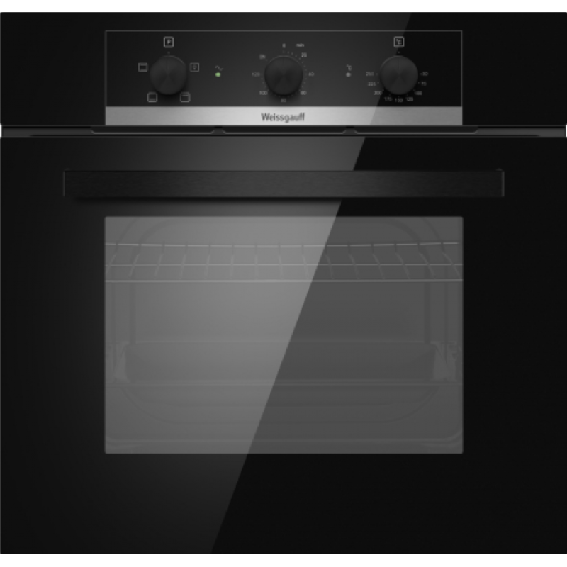 Объем 60 литров дает вам полную уверенность в том, что приобретая этот духовой шкаф, вы сможете разместить в нем сразу весь необходимый объем пищи, и даже профессионально работать на нескольких уровнях одновременно, порадовав себя и своих близких настоящим пиром, приготовленным в духовом шкафу Weissgauff на действительно ресторанном уровне.4 функции духового шкафа: Подсветка, Нижний нагрев + Верхний нагрев, Нижний нагрев, Верхний нагрев.Технологичные поворотные переключатели Soft Switch - дают уверенность в надёжности и настоящем немецком качестве духового шкафа, ведь вы будете ощущать плавность и точность движений в каждом повороте рукоятки.Эмаль SMART CLEAN - это особое покрытие духового шкафа, призванное сделать процесс ухода за ним еще более простым и удобным. Благодаря эмали, изготовленной и нанесенной с применением сразу ряда инновационных технологий, ваш духовой шкаф будет оснащен самым настоящим высокоэффективным щитом, препятствующим накоплению жира, запаха и загрязнений, образующихся вследствие многократного приготовления еды.Тройное стекло дверцы, воплощающее в себе весь подход к безопасности и термозащите, который Weissgauff реализовали в данной модели. Такое стекло обеспечивает вам значительно большую степень защиты при случайных прикосновениях к нагревающейся дверце плиты, чем в моделях, не оснащенных технологией многослойного стекла. Для нас в Weissgauff важно, чтобы работа с бытовой техникой была не только приятной, но и безопасной!Съемная дверца, делает процесс очистки духовки гораздо более удобным и простым: всего лишь снимите дверцу за считанные минуты, чтобы совершить чистку всех труднодоступных мест, вернув облику вашего духового шкафа первозданную чистоту.Дизайн в черном цвете - станет финальным штрихом в совершенстве облика этой модели. Каждый раз, взаимодействуя с духовым шкафом от Weissgauff, вы будете в полной мере ощущать, как он способен нагревать не только еду, но и согревать душу, став настоящим сердцем вашего уютного домашнего очага.  Технические характеристикиСрок гарантии: 2 годаТип духового шкафа: электрический (независимый)Функции: 4 функции: верхний + нижний нагрев (традиционное приготовление), верхний нагрев, нижний нагрев, подсветкаЦвет: черныйОбъём, л: 60Тип управления: поворотные рукояткиКоличество режимов: 4Материал панели: стеклоКоличество стекол в дверце: 3Мощность, кВт: 2,35Очистка духовки: пароваяДисплей: нетУправление: механическоеПереключатели: поворотныеШирина, мм: 595Глубина, мм: 520Высота, мм: 590Регулятор-термостат: естьТаймер: естьАксессуары: 1 универсальный противень и 1 решеткаВес нетто, кг: 27,2Страна производства: КитайСрок службы: 5 лет