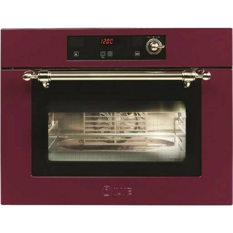 Духовой шкаф электрический Ilve 645-SCHSW/BUG представляет собой эксклюзивное бытовое устройство, задающее тон во всем доме, а также дополняющее интерьер помещения, делая его индивидуальным и неповторимым.Класс энергопотребления AГрильЛегкоочищаемое покрытиеКонвекцияОсобенностиЭлектронное управление температуройРазличное статическое приготовление, интенсивное жарение и режим конвекции при температуре 30...250°CЭлектронный программатор с сенсорным TFT-дисплеемЦифровой дисплей, сенсорное управление с таймеромУправление кнопками +/-Температурный зондОбъем камеры 36лРабочая камера из нержавеющей стали,Высококачественноая термоизоляцияТройное остекление дверцыУсиленная тангенциальная вентиляцияГалогенная подсветка рабочей камерыЗащита от детейПрограммы приготовления:10 видов нагрева:- Конвекция- Гриль с конвекцией- Гриль + конвекция- Микроволны с четырьмя уровнями мощности (270, 500, 800 и 1000 Вт) и режимом «быстрый нагрев»- Пар (от 40 до 100 °C)- COMBI 1 (пар + конвекция)- COMBI 2 (пар + микроволны от 270 до 500 Вт)- COMBI 3 (конвекция + микроволны от 270 до 500 Вт)- COMBI 4 (гриль + микроволны от 500 до 800 Вт)- программа очистки паромХарактеристикиКласс энергопотребления: АВнутренний галогенный светВнутренний резервуар с водой емкостью 1 лПотребляемая мощность нагревательных элементов: электрогриль 1650 Вт / кольцевой 1600 ВтПотребляемая мощность парогенератора: 1200 Вт