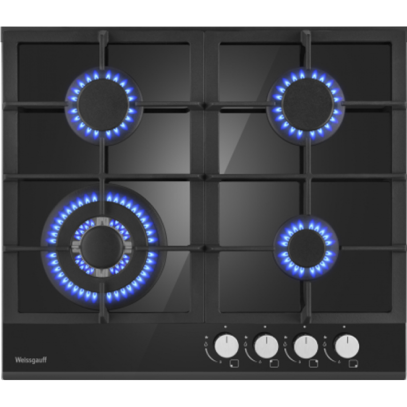 Ширина 60 см это европейский стандарт качества, признанный миллионами довольных покупателей по всему миру!Чёрное закаленное стекло с покрытием NanoGlass отлично справляется с механическими воздействиями и температурными перегрузками, легко очищается благодаря способности этого покрытия препятствовать пригоранию частиц пищи и накоплению жировых отложений.Автоматический электроподжиг, независимо встроенный в каждую из рукояток, позволит зажечь любую конфорку, всего одним нажатием и поворотом руки, не прибегая к дополнительным приспособлениям!Газ-контроль каждой конфорки обеспечивает безопасность: в случае, если пламя погасло, подача газа будет автоматически прекращена!Решетки из высококачественного чугуна это неизменное качество, надежность и долговечность, воплощенные в каждой детали! Благодаря особому строению цельных решеток размещение посуды на них становится еще более удобным и устойчивым!WOK-конфорка имеет два ряда пламени, что позволяет использовать посуду большого объёма и приготовить еду, экономя тем самым время, газ и сохраняя при этом максимум полезных веществ в продуктах!Рукоятки Hi-Tech конструктивные особенности строения и расположения этих рукояток защищают их от перегрева и деформации при длительном термическом воздействии в процессе приготовления еды!  Технические характеристикиСрок гарантии: 2 годаМатериал панели конфорок: Закаленное стекло NanoGlassСпособ подключения: газоваяКоличество конфорок: 4Материал решёток: чугунГаз-контроль конфорок: естьЭлектроподжиг: автоматическийШирина, мм: 600Глубина, мм: 510Вок-конфорка: естьЦвет панели конфорок: чёрныйПереключатели: поворотныеВес, нетто: 13,2 кгМощность конфорок, кВт: 1*3,4(двойной контур) 2*1,8(средняя) 1*1,0(маленькая)Электроснабжение: 220-240 В~, 50-60 ГцРасположение панели управления: спередиКнопка блокировки панели: нетСтрана производства: КитайСрок службы: 5 лет