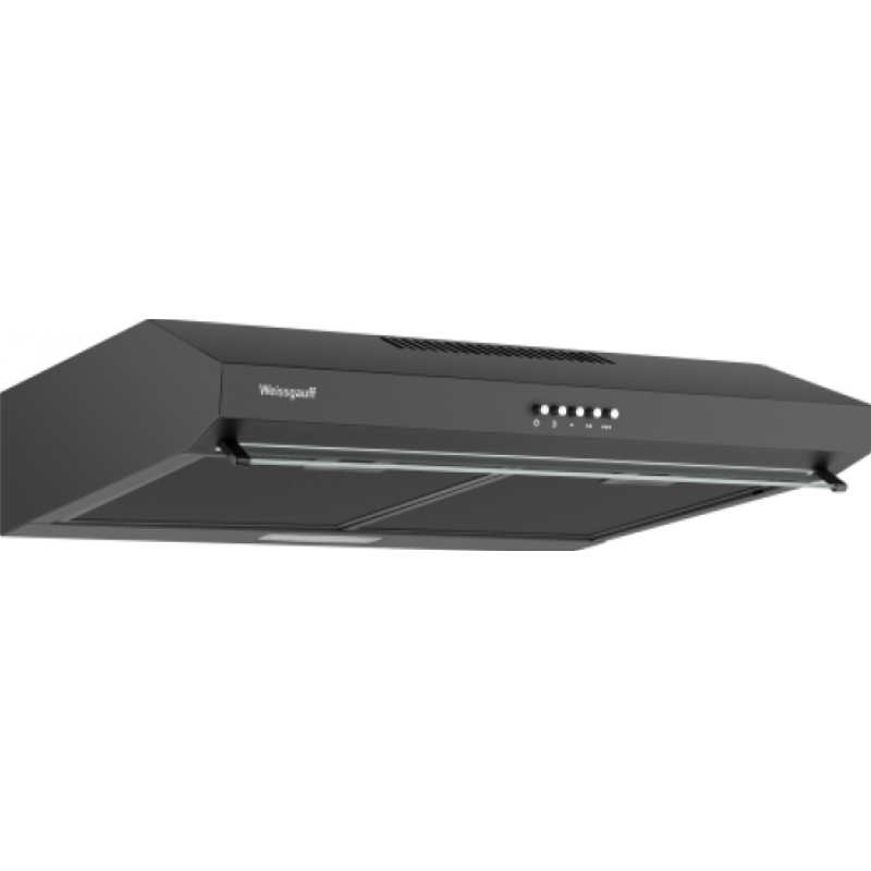Впечатляющая производительность 600 м3/ч позволит эффективно и бескомпромиссно справиться с задачей по очистке воздуха на вашей кухне!Эффективная работа в помещении площадью до 16 м2 - это гарантия того, что после установки вытяжки Weissgauff, обновление воздуха будет соответствовать всем требуемым нормам, сохраняя ваше здоровье на долгие годы!Низкий уровень шума 65 дБ сделает работу с данной вытяжкой по-настоящему комфортной и приятной, ведь мы в Weissgauff знаем, как добиться высокой производительности без лишнего шума!Дизайн, выполненный в черном цвете станет финальным штрихом в совершенстве великолепного облика этой модели. Каждый раз, заходя на кухню, вы будете чувствовать, что эта вытяжка - не просто функциональное устройство, но и настоящее украшение вашей кухни!Кнопочный блок управления интуитивно понятный даже пользователю, никогда ранее не работавшему с подобной техникой, сделает работу с этой вытяжкой поистине удобной и приятной!Работа в режимах отвода и циркуляции откроет вам широкие возможности по установке этой вытяжки в проект вашей кухни. Организуйте полноценный вывод воздуха из помещения или установите угольный фильтр и используйте вытяжку вместе с ним - какой бы вариант вы ни выбрали, модель от Weissgauff сделает это возможным!3 скорости работы двигателя дают вам возможность выбрать наиболее подходящий уровень интенсивности в зависимости от ситуацииАлюминиевый жировой фильтр особой трёхслойной конструкции, с асинхронным расположением решёток, эффективно защитит двигатель от жира и испарений, продлив срок службы устройства.LED освещение, представленное двумя экономичными  и яркими лампами, дает возможность создать более комфортные условия на кухне и использовать эту вытяжку как дополнительный источник кристально чистого света.Возможность установки угольного фильтра станет отличным решением для вытяжки, работающей в режиме рециркуляции, позволяющим повысить эффективность очистки воздуха и избавиться от нежелательных запахов!Технические характеристикиСрок гарантии: 2 годаТип вытяжки: ПлоскаяЦвет: черныйКатегория производительности, м3/ч: 600-900Максимальная производительность, м3/ч: 600Управление: кнопочноеУровень шума: 65 дБКоличество скоростей: 3Диаметр воздуховода: 120 ммПлощадь помещения, м2: 16Ширина, мм: 600Глубина, мм: 470Высота, мм: 130Освещение: LED 1x2 ВтВес нетто, кг: 4,6Тип воздуховода: круглый