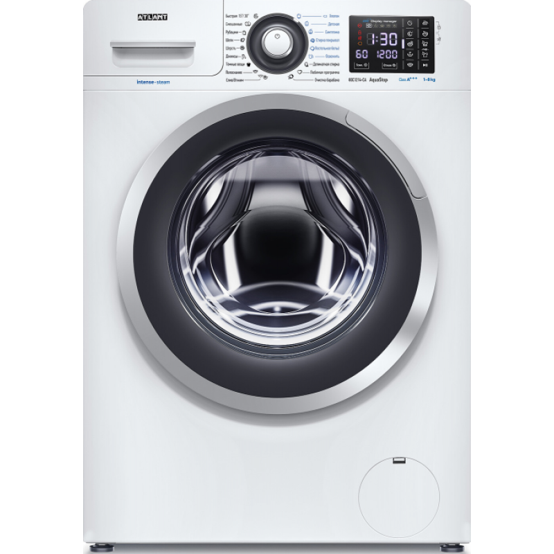 ЛотокУвеличенный лоток имеет ручку с выступающей для захвата частью, на которую нанесено рифлениеРучка дверцыОригинальный дизайн скрытой ручки дверцы загрузочного люкаФорма отверстий и гребней барабанаОсобые формы отверстий и гребней барабана для равномерного распределения бельяСенсорный дисплейСтиральные машины серии INTENSE оснащены дисплеем с сенсорным управлениемПанель управленияДля лучшего обзора элементов управления предусмотрен наклон панели на 15°. Надписи и значки на панели управления информативны и облегчают управлениеРучка-программаторСтиральные машины серии INTENSE с широкими функциональными возможностями просты в управлении - с помощью ручки выбирается необходимая программаОбщие данные:Габариты: 84.6x59.6x48.1 смМаксимальная загрузка: 8 кгСкорость отжима: 1200 об/минКласс стирки: AКласс отжима: BКласс энергопотребления: A+++Программы стирки:СмешанныеБыстрая 15/30 минутДеликатная стиркаСтирка покрывалПостельное бельеЛюбимая программаСлив/ОтжимОчистка барабанаХлопокСинтетикаШерстьШелкПолосканиеРубашкиДжинсыДетскаяТемные вещиОсвежить паромДополнительные функции:Замачивание (до 2 ч, с возможностью отключения функции)Пауза/остановить и добавитьДобавить водыБез отжимаОтложенный старт (до 24 ч)Предварительная стиркаДополнительное полосканиеДобавление воды на всех этапах стиркиЗащита от детейЛегкое глаженьеВыбор скорости отжимаВыбор температуры стиркиНочной режимПаровая опция «Стирка с паром»Паровая опция «Обработка паром»Управление:Тип кнопок: сенсорныеДисплейЗвуковой сигналБезопасность:СамодиагностикаЗащита от перепадов напряжения в электросетиЭлектронный контроль дисбаланса (защита от повышенных вибраций и шума)Блокировка двери от открыванияОхлаждение воды перед сливомКонтроль уровня пеныСистема защиты от протечек AQUA-STOPСистема защиты от протечек AQUA-PROTECTЗащита от включения при ошибочном нажатии кнопок (защита от детей)Дополнительная информация:Глубина по панели управления с учетом кнопок и ручек: 526 ммГлубина с люком: 549 ммДиаметр загрузочного отверстия: 340 ммЦвет внутреннего обрамления дверцы: тёмно-серыйЦвет наружного обрамления дверцы: серебристыйТип мотора: коллекторныйУровень шума при стирке: 59 дБУровень шума при отжиме: 75 дБМатериал бака: ПолипропиленМатериал барабана: Нержавеющая стальНоминальная потребляемая мощность: 2100 ВтГребень с антибактериальной добавкойУплотнитель с антибактериальной добавкойЛоток для моющих средств с антибактериальной добавкойПотребляемая мощность в режиме «Выключено», Вт, не более: 0,5 ВтПотребляемая мощность в режиме «Оставлено включенным», Вт, не более: 1,0 ВтСреднее значение содержания остаточной влаги: 54 %Среднее время выполнения стандартной программы стирки белья из хлопка 40 С (1/2 загрузка): 163 минПродолжительность режима «Оставлено включенным», мин, не более: 15 МинГодовой расход воды, не более: 11660 л/год