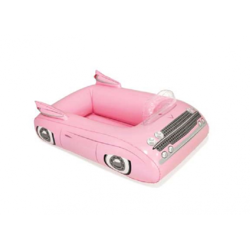 Теперь отдыхать в бассейне можно еще комфортней, ведь даже для утоления жажды не придётся вставать с любимого надувного круга или матраса. Надо лишь подплыть к розовому автомобилю, внутри которого стоят стаканы с прохладительными напитками. Изделие легко надувается, после чего его останется лишь разместить его на воде и можно ставить внутри стаканы и бутылочки. Напитки не будут нагреваться за счет тонкого дна изделия, охлаждаемого водой из бассейна, а необычный дизайн понравится любому ребенку. Благодаря небольшим размерам и простоте надувания автомобиля его можно брать с собой в поездки или во время отдыха у водоемов и за городом. Корпус изделия выполнен из прочного винила, поэтому устойчив к высоким температурам и повреждениям, а стойкие красители не выгорают на солнце долгое время. Примечание: для надувания изделия понадобится механический или электрический насос.