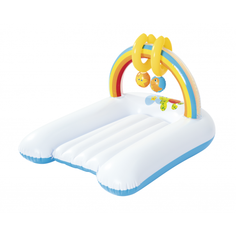 Матрасик надувнойПрочный предварительно протестированный ПВХМягкое надувное покрытие обеспечивает дополнительный комфорт2 игрушки на арке издают звук при нажатииОтлично подходит для путешествий - легко надувается и сдуваетсяДля детей от 0 до 2 лет2 подвесные игрушкиРемонтная заплатаРазмер матрасика 81x63x46 см