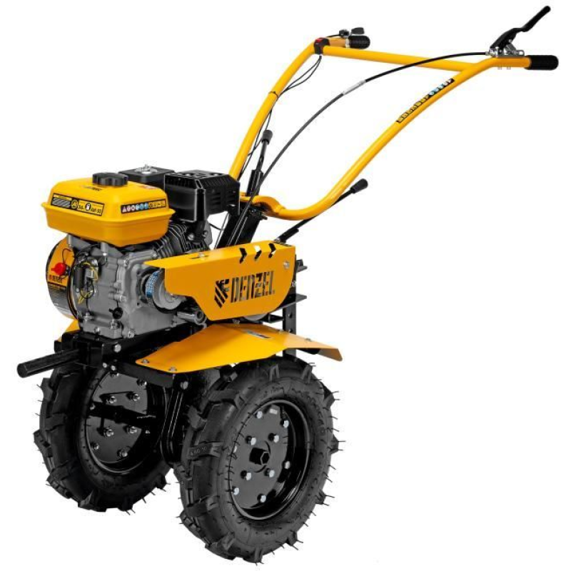 Двигатель DenzelТип двигателя бензиновый, 4-х тактныйОбъем двигателя, куб.см. 212Мощность двигателя, л.с. 7Запуск ручнойРасход топлива, л/час 1Емкость топливного бака, л. 3.6Рекомендуемое топливо АИ-92Емкость картера двигателя, л. 0.6Тип редуктора шестеренчато-цепнойОбъем картера редуктора, л 1.15Количество скоростей 2 вперед/1 назадКолеса 4,00-10Тип сцепления ременнойОтбор мощности шкивДиаметр фрез, см. 35Уровень шума, Дб. 104Ступица шестигранник 23 ммШирина обработки, см. 100Корпус редуктора чугунКомплектацияКоличество фрез в комплекте 24Габариты упаковки, cм 78х57х71Упаковка картонная коробкаВес, кг. 72Особенности колеса в комплекте
