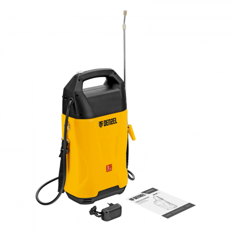Аккумуляторный опрыскиватель Denzel D-8LI 64795 с баком объемом 8 л и Li-Ion батареей на 12 В, емкостью 2 А·ч, используется для ухода за растениями, а также для распыления инсектицидных жидкостей, дезинфекции помещений, мытья окон, стен и дорожек.Длина штанги регулируется в диапазоне 380-630 мм, а максимальная дальность распыления составляет 4 м, что позволяет обрабатывать участки большой площади и труднодоступные места.Опрыскиватель экономит силы и время пользователя, будет полезен в быту и на производстве.Технические характеристики  Аккумулятор: Li-lon 2 Ач, 12 ВПроизводительность: 0.5 л/минДавление: 2 барОбъем бака: 8 лДлина шланга: 1.2 мМатериал: пластикБазовая комплектация: аккумулятор, зарядное устройство, насадкаВес в упаковке: 1.5 кгГабариты упаковки: 26.7х19х47.5 см