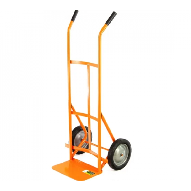 Ручная 2-х колесная облегченная тележка СИБРТЕХ г/п 130кг, платформа 355х230 68949 подходит для строительных и ремонтных работ, упрощает перевозку грузов, в том числе сборных. Литые колеса - оптимальный вариант для некачественного дорожного полотна. Выдерживают любые повреждения.  Наличие сварного диска повышает жесткость конструкции и устойчивость колес к разрушительным вибрациям. Модель надежно защищена от коррозии и имеет длительный срок службы.Технические характеристикиТип тележки ручная 2-х колеснаяГрузоподъемность 130 кгРазмер платформы 355х230 ммСкладная конструкция нетДиаметр колес 200 ммМатериал колеса резинаКласс товара ПолупрофессиональныйПреимуществаРама СИБРТЕХ 68949 окрашена порошковой эмалью.Тележка имеет изогнутые назад рукоятки, которые позволяют нагружать тележку в горизонтальном положении.Тележка комплектуется двумя колесами с литыми шинами.Наличие двух шариковых подшипников в колесе обеспечивает более легкое перемещение.Диск колеса сварной.Маркировка колеса 8 х 1.75.
