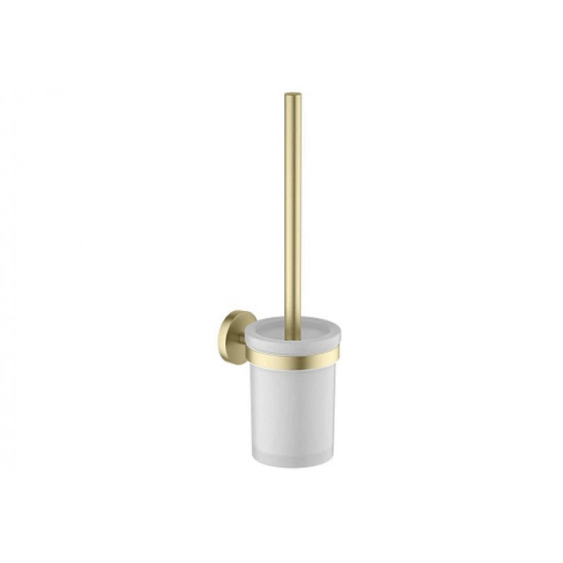 Тип: ершикНазначение: для санузлаМонтаж: на стену, подвеснойКоличество монтажных отверстий: 1Метод крепления: шурупыОбщий размер: 50*118*337 ммМатериал: латунь, стекло белое матовоеПоверхность: матоваяЦвет:  золото шлифованное