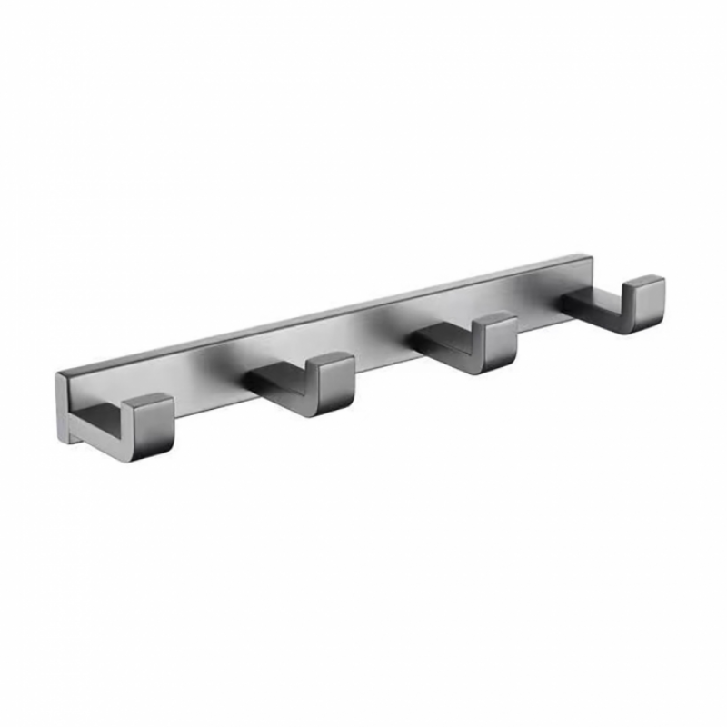 Тип: вешалкаНазначение: для ванной комнатыМонтаж: подвеснойКоличество монтажных отверстий: 2Размер: 29х6х3 смКоличество крючков: 4Материал: нержавеющая стальПоверхность: матоваяЦвет: никель