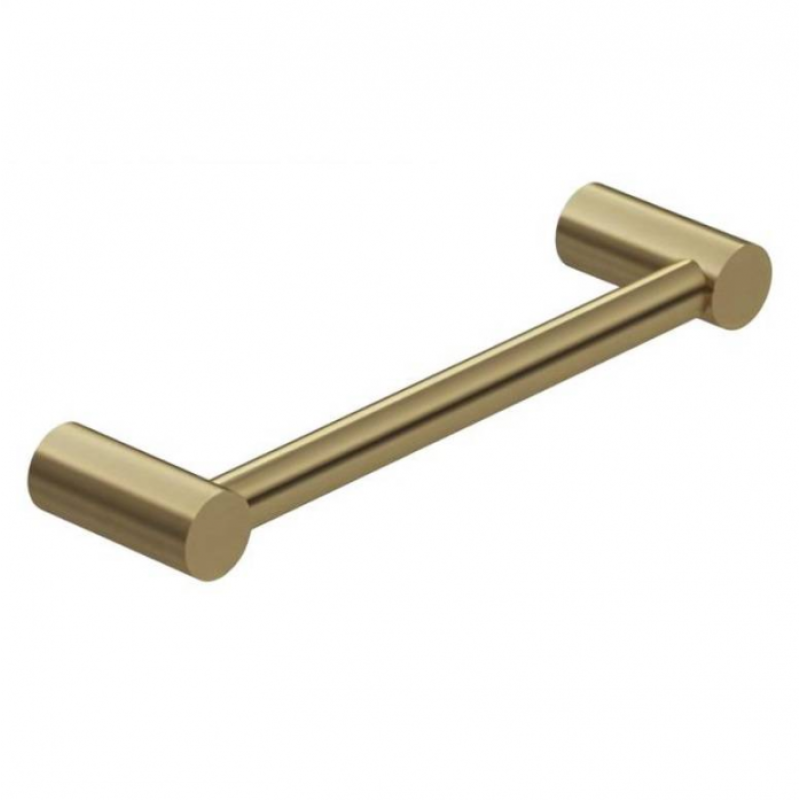 Тип: держатель для полотенцаНазначение: для ванной комнатыМонтаж: на стенуКоличество отверстий для монтажа: 2Метод крепления: шурупыКонструкция: штангаДлина: 300 ммКрепления в комплекте: даМатериал: латуньПокрытие: матовоеЦвет:  золото брашированное