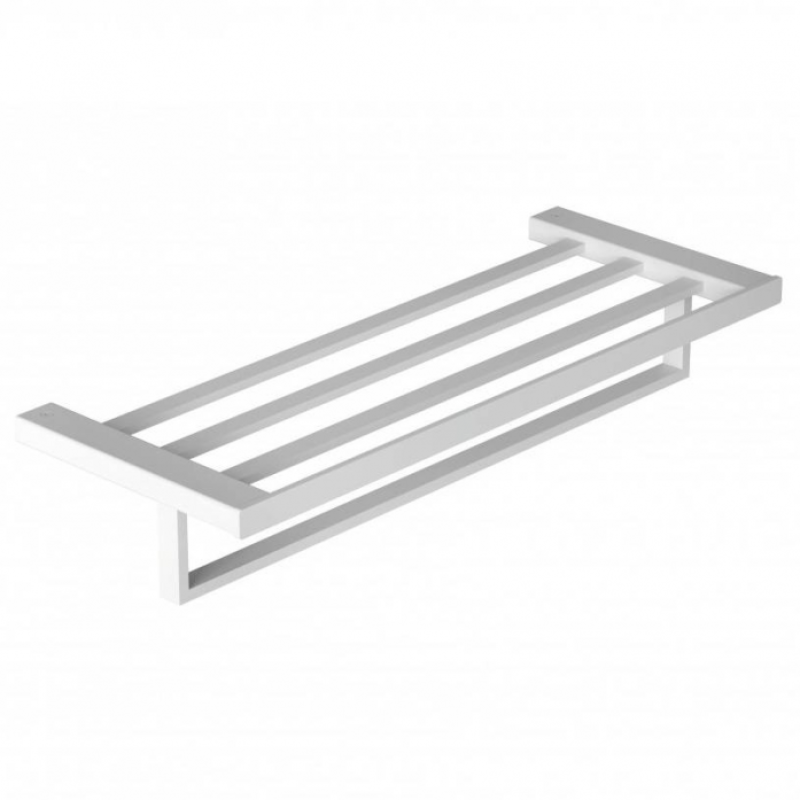 Тип: держатель для полотенца с полкойНазначение: для ванной комнатыМонтаж: на стенуКоличество отверстий для монтажа: 2Метод крепления: шурупыДлина: 600 ммМатериал: латунь класса АПокрытие: матовоеЦвет: белый матовый