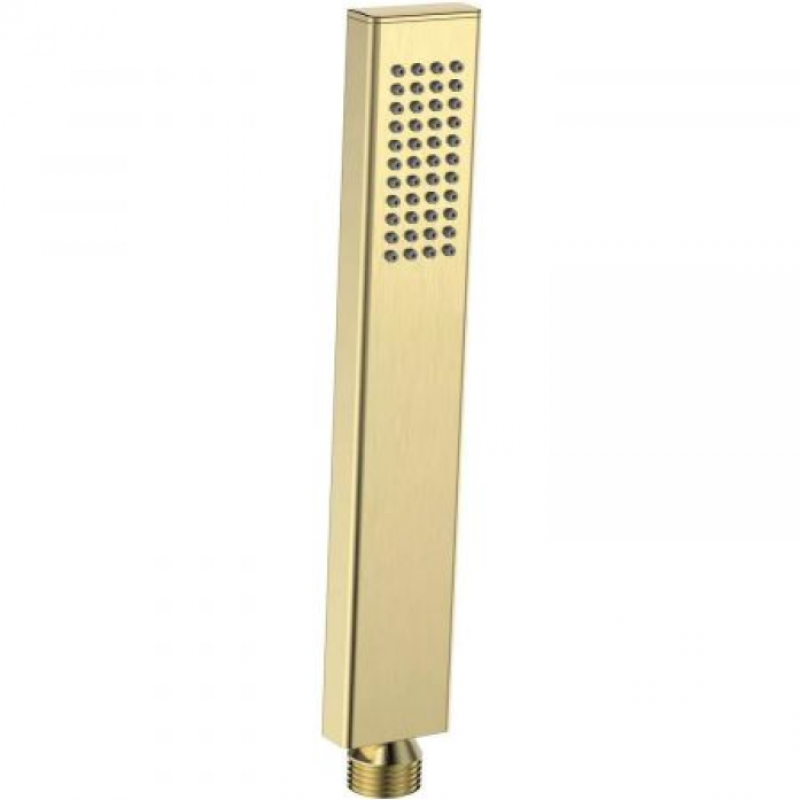 Тип: ручной душНазначение: для душаРазмер лейки: 200х35х15,5 ммКоличество режимов лейки: 1Стандарт подводки: 1/2"Материал: ABS-пластикПокрытие: шлифованноеЦвет: золото шлифованное