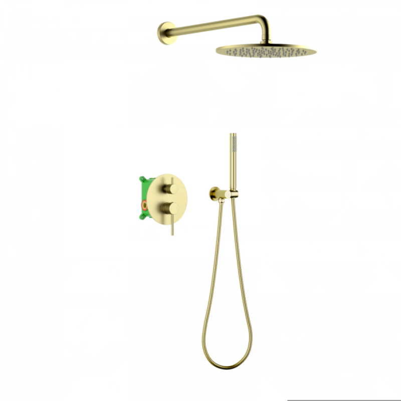 Тип: душевая системаНазначение: для душаМонтаж: скрытыйКоличество монтажных отверстий: 3Управление: рычажноеУгол наклона верхней лейки: регулируетсяРазмер верхнего душа: 250 ммРучной душ: в комплектеКоличество режимов душевой лейки: 1Механизм: керамический картриджДиаметр картриджа: 35 ммСтандарт подводки: 1/2"Система против известковых отложений: даМатериал: латунь класса АЦвет: золото матовое