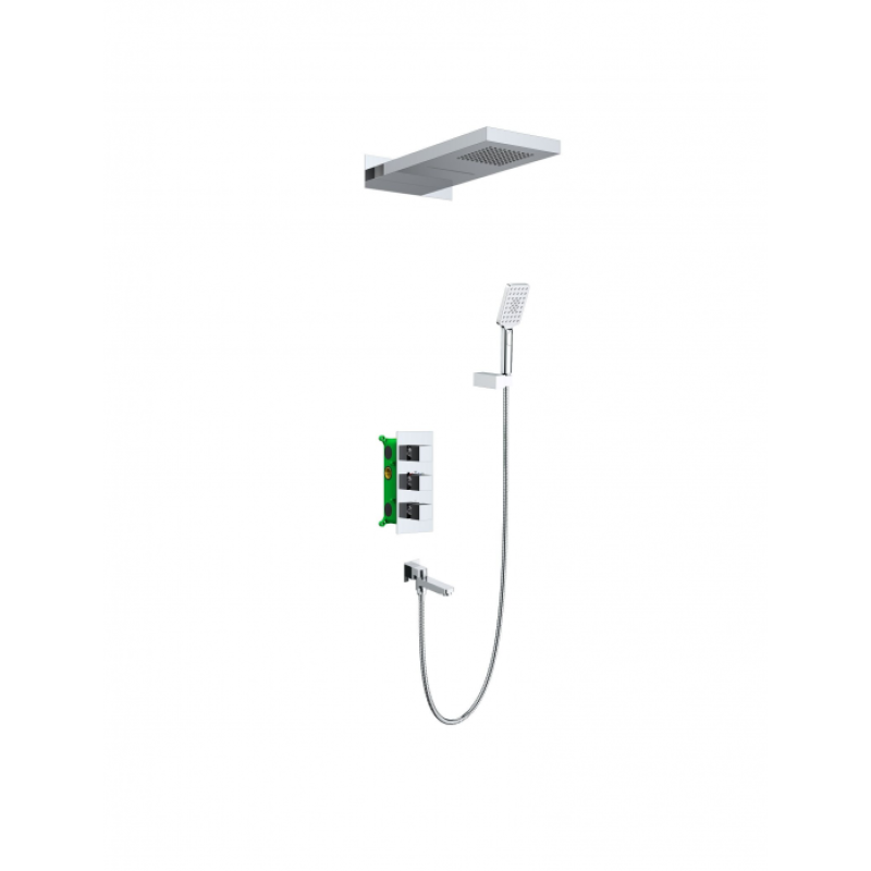 Душевая система с термостатом Timo Petruma 5079 относится к премиальному сегменту, предназначена для монтажа в полой или твердой стене. Термостатический картридж поддерживает стабильную температуру воды, обеспечивая максимально комфортные условия для принятия водных процедур. Настенный душ с двумя режимами позволяет принимать водные процедуры в зависимости от настроения. Регулируя напор воды можно получить массажное воздействие различной интенсивности. Используя режим "каскад"- получают седативное (успокаивающее) воздействие на затылочную часть головы или шейный отдел. Основные преимущества встроенной системы: элегантный внешний вид, все коммуникации и крепления спрятаны в стену, снаружи видны только декоративные элементы. Установить встроенную систему можно в любом месте. Использовать такой смеситель очень удобно, регулировка температуры воды осуществляется ручкой термостата (расположена по центру). Режим "тропический душ" и увеличение напора осуществляется поворотом ручки дивертора (расположена сверху) влево. Смеситель может работать в нескольких режимах одновременно "каскад"+"ручной душ", "тропический душ"+"ручной душ", "каскад"+"излив", "тропический душ"+"излив".Тип: душевая системаНазначение: для душаМонтаж: встраиваемыйУстановка: настеннаяКоличество монтажных отверстий: 3 Стандарт подводки: 1/2"Управление: термостатическоеКоличество режимов лейки: 3Встраиваемая часть: в комплектеТермостатический картридж: даМатериал: латунь класса АМатериал ручной лейки: пластикПокрытие: глянцевоеЦвет: хром
