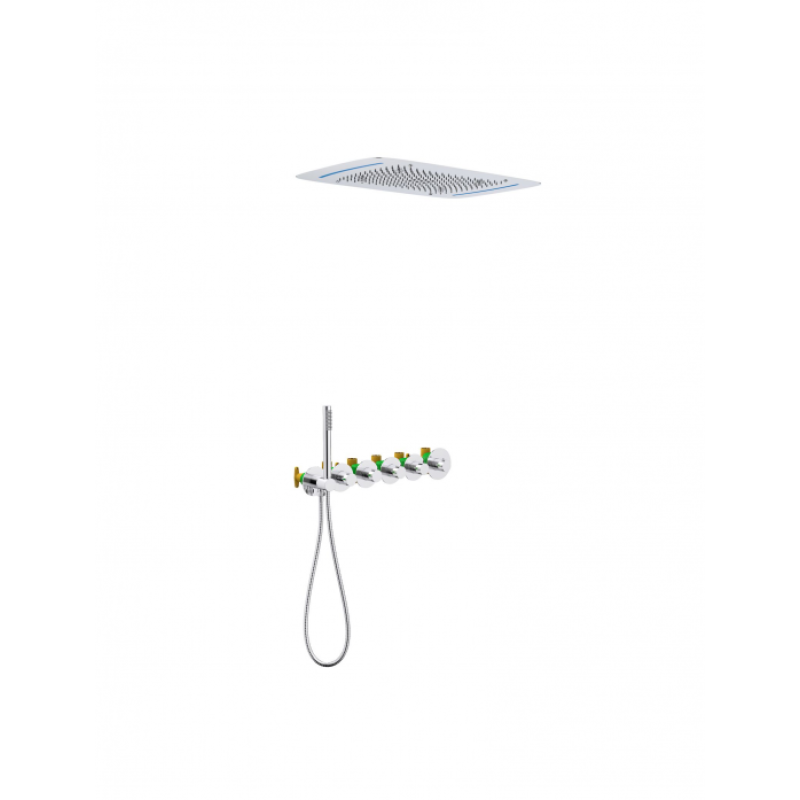Встраиваемая душевая система с термостатом Timo Saona 2319 относится к премиальному сегменту, предназначена для монтажа в полой или твердой стене. Термостатический картридж поддерживает стабильную температуру воды, обеспечивая максимально комфортные условия для принятия водных процедур. Встроенный потолочный душ большого размера создает имитацию проливного дождя, вода обливает человека целиком. Регулируя напор воды можно получить массажное воздействие, что очень полезно для здоровья. Основные преимущества встроенной системы: элегантный внешний вид, все коммуникации и крепления спрятаны в стену и потолок, снаружи видны только декоративные элементы. Установить встроенную систему можно в любом месте.Тип: душевая системаНазначение: для душаМонтаж: встраиваемыйУгол наклона верхней лейки: не регулируетсяРазмер верхнего душа: 680 x 430 ммКартридж: с термостатомУправление: мультирычажноеСтандарт подводки: 1/2"Ручной душ: в комплектеДержатель для душевой лейки: даКоличество режимов: 3Подсветка: даМатериал: латунь класса АЦвет: хром