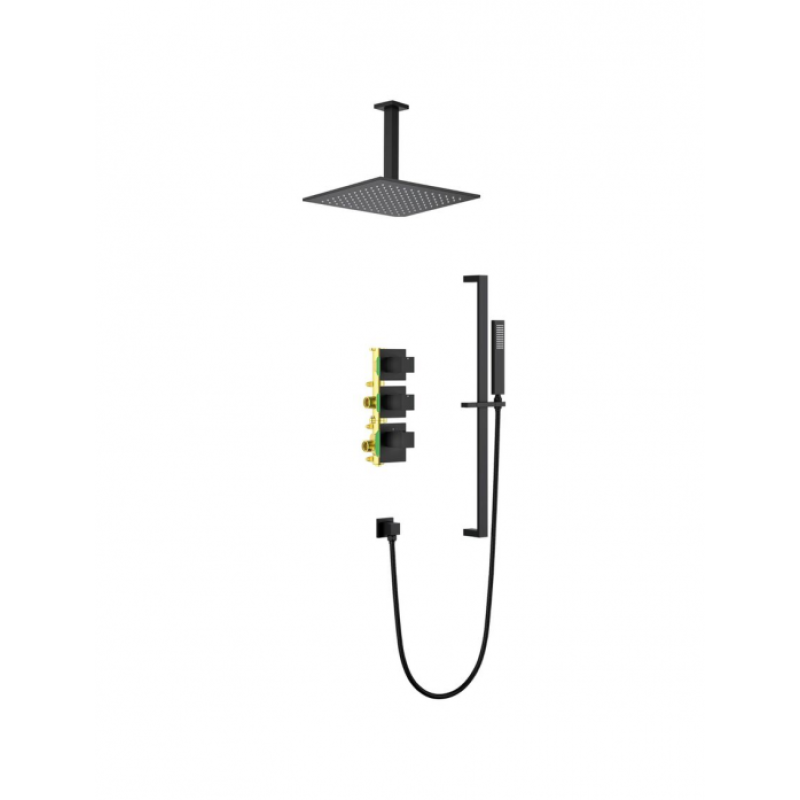 Душевая система с термостатом Selene 2229 относится к премиальному сегменту, предназначена для монтажа в полой или твердой стене. Верхний душ с вертикальным потолочным креплением выполнен из латуни. Термостатический картридж поддерживает стабильную температуру воды, обеспечивая максимально комфортные условия для принятия водных процедур. Регулируя напор воды в режиме "тропический душ" можно получить массажное воздействие различной интенсивности. Основные преимущества встроенной системы: элегантный внешний вид, все коммуникации и крепления спрятаны в стену, снаружи видны только декоративные элементы. Установить встроенную систему можно в любом месте. Использовать такой смеситель очень удобно, стильная стойка из латуни позволяет установить ручную лейку-карандаш на необходимую высоту. Регулировка температуры воды осуществляется ручкой термостата (расположена снизу). Включение режима "тропический душ" и регулировка напора осуществляется поворотом ручки дивертора (расположена сверху) влево. В положении ручки дивертора 12:00 режим "тропический душ" выключен. Для переключения в режим "ручной душ" поверните ручку дивертора (расположена по центру) от 12:00 против часовой стрелки. Увеличение напора воды регулируется поворотом ручки влево. В положении ручки 12:00 режим "ручной душ" выключен.Тип: душевая система с термостатомНазначение: для душаМонтаж: встраиваемыйКоличество монтажных отверстий: 3 Стандарт подводки: 1/2"Тип дивертора: дивертор с керамическими пластинамиРучной душ: в комплектеВстраиваемая часть: в комплектеДлина душевого шланга: 150 смМатериал: латунь класса АПокрытие: матовоеЦвет: черный матовыйКомплектация: Встраиваемый блок управления душевой системой - 1 шт.Декоративные накладки - 3 шт. Декоративные гильзы - 3 шт. Ручки управления режимами (дивертор) - 2 шт. Ручка управления термостатом - 1 шт. Отвод из стены с подключением шланга душа - 1 шт. Шланг душа 1,5 м (латунный) - 1 шт.Стойка для душа (латунная) - 1 шт. Ручной душ (латунный) - 1 шт. Держатель лейки тропического душа (латунный) - 1 шт.Тропический душ (латунный) - 1 шт. Инструкция - 1 шт.