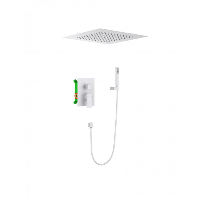 Тип: душевая системаНазначение: для душаМонтаж: настенный (внутристенный)Управление: рычажноеУгол наклона верхней лейки: не регулируетсяТип излива: поворотныйРазмер верхнего душа: 400 x 400 ммРучной душ: в комплектеКоличество режимов душевой лейки: 3Механизм: керамический картриджДиаметр керамического картриджа: 35 ммСтандарт подводки: 1/2"Материал: латунь класса А, пластикПоверхность: матоваяЦвет: белый матовый