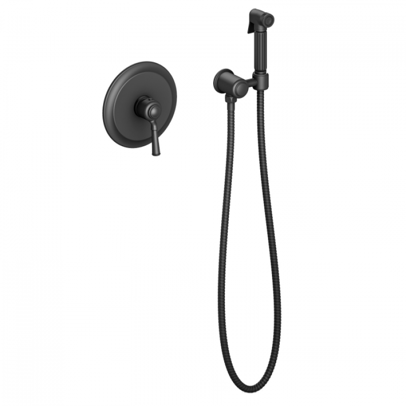 Изделие: смеситель с гигиеническим душемТип смесителя: для раковины и унитаза с гигиеническим душемВстраиваемый смеситель: даУстановка: скрытая (встраиваемая), на стенуОтверстия для монтажа: 2Управление: однорычажноеПодводка: жесткаяСтандарт подводки: 1/2Механизм: керамический картриджДиаметр керамического картриджа: 35 ммРучной душ: даШланг: 1250 ммМатериал: латуньЦвет покрытия: черный матовый
