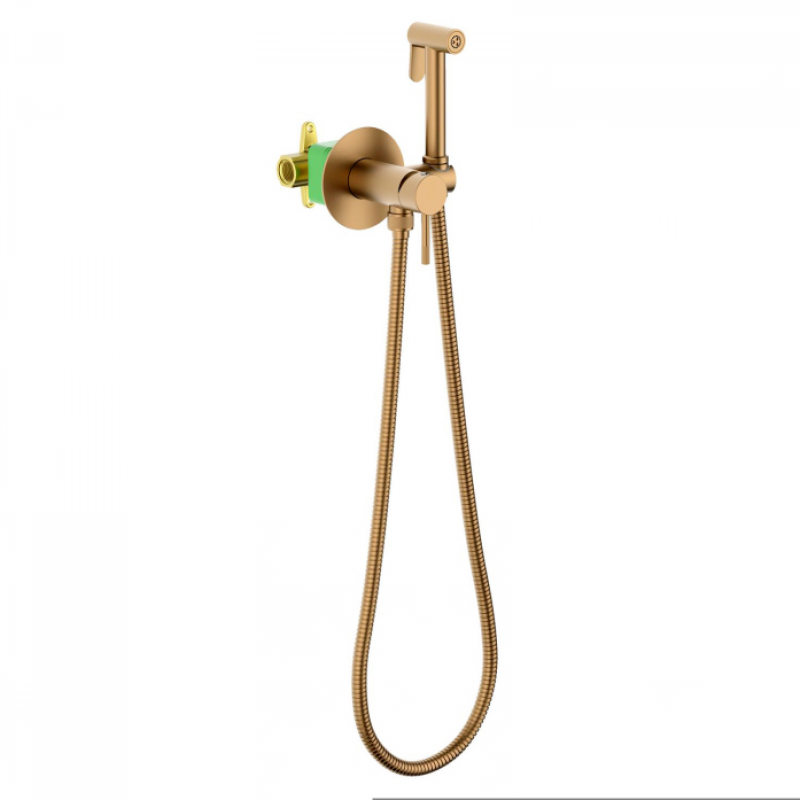 Встраиваемый смеситель с гигиеническим душем Timo Saona 2338 предназначен для монтажа в твердой или полой стене. Основной задачей данной модели является: экономия места (установка чаши для биде занимает достаточно много места и к тому же затратнее). Все коммуникации, крепления и механизмы спрятаны в стену и закрыты декоративной накладкой, снаружи находится только рычаг управления смесителем и держатель гигиенической лейки с подключением шланга, такая модель отлично сочетается с инсталляцией для унитаза. Длины шланга 1,2 метра хватает для решения гигиенических задач. Можно также использовать например, для мытья собаки после прогулки или наполнения ведра воды и т.д.Тип: гигиенический душМонтаж: внутренний (скрытый монтаж)Количество монтажных отверстий: 1Управление: рычажноеТип подводки: гибкаяСтандарт подводки: 1/2"Длины шланга: 1,2 метраВстраиваемая часть: в комплектеМатериал: латунь класса АПоверхность: глянцеваяЦвет: розовое золото