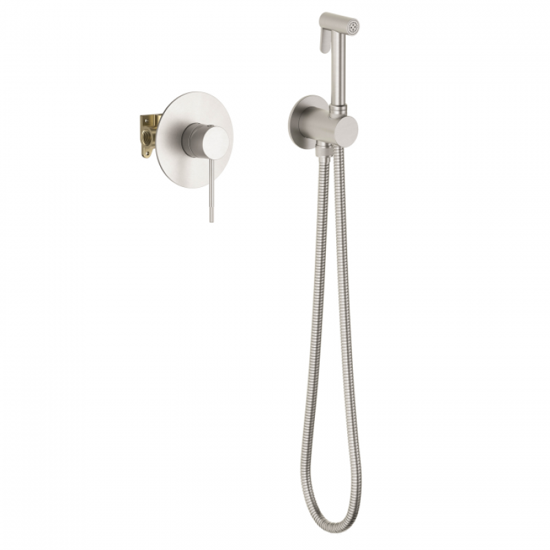 Встраиваемый смеситель с гигиеническим душем Timo Saona 2389 предназначен для монтажа в твердой или полой стене. Основной задачей данной модели является: экономия места (установка чаши для биде занимает достаточно много места и к тому же затратнее). Все коммуникации, крепления и механизмы спрятаны в стену и закрыты декоративной накладкой, снаружи находится только рычаг управления смесителем и держатель гигиенической лейки с подключением шланга, такая модель отлично сочетается с инсталляцией для унитаза. Длины шланга 1,2 метра хватает для решения гигиенических задач. Можно также использовать например, для мытья собаки после прогулки или наполнения ведра воды и т.д.Тип: смеситель Назначение: для гигиенического душаМонтаж: встроенныйКоличество монтажных отверстий: 2Управление: рычажноеТип подводки: гибкаяСтандарт подводки: 1/2"Тип излива: фиксированный Материал: латунь класса А Поверхность: матоваяЦвет: никель