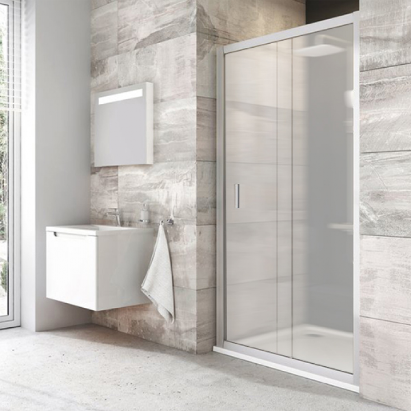Изделие состоит из одной неподвижной части и одной подвижной, образующей двери. Устанавливается в облицованный кафелем угол ванной комнаты (идеально для облицованной ниши или для комбинации с неподвижной стенкой BLPS) на поддоны RAVAK PERSEUS, PERSEUS PRO, PERSEUS PRO FLAT, PERSEUS PRO CHROME, GIGANT PRO, GIGANT PRO FLAT, GIGANT PRO CHROME или непосредственно на пол со встроенным душевым каналом или трапом.Монтаж  напольный / на поддонШирина, см  100Высота, см  190Конструкция дверей  раздвижнаяШирина входа  41Материал полотна двери  стеклоТолщина полотна двери, мм  6Количество секций двери  1Материал профиля  алюминийОриентация  универсальнаяИсполнение полотна двери  матовое / рифленоеЦвет профиля  сатинРегулируемая ширина  даДвери открываются внутрь и наружу  нетДополнительные функции  покрытие антикапляДополнительная информация  регулируемая ширина 97-101 см