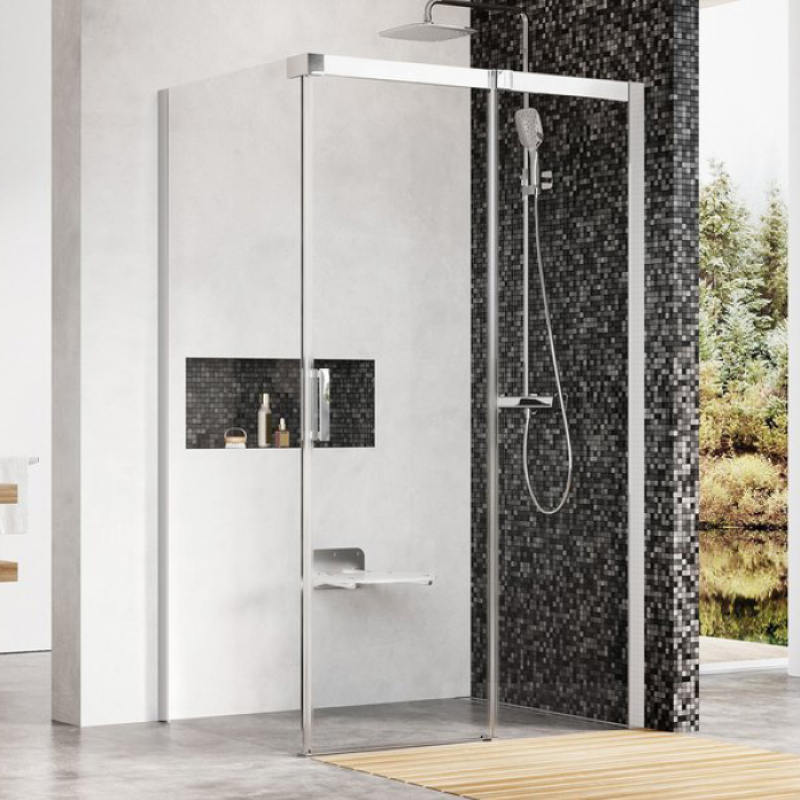 Изделие состоит из двухэлементных душевых дверей (одна неподвижная часть и одна подвижная часть, образующая раздвижные двери) и одноэлементной неподвижной стенки. Устанавливается в облицованный кафелем угол ванной комнаты на поддоны Perseus Pro Chrome, Gigant Pro Chrome или непосредственно на пол со встроенным душевым каналом или трапом.Артикул: 0WPG4C00Z1Тип товара: душевой уголокКоллекция (Сантехника): MATRIXВысота: 1950Ширина: 800Длина: 1200Исполнение: RМатериал: профиль из анодированного алюминия, безопасное стеклоЦвет профиля (Сантехника): блестящийЦвет стекла: прозрачныйТолщина стекла: 8 мм - неподвижный элемент, 6 мм - подвижный