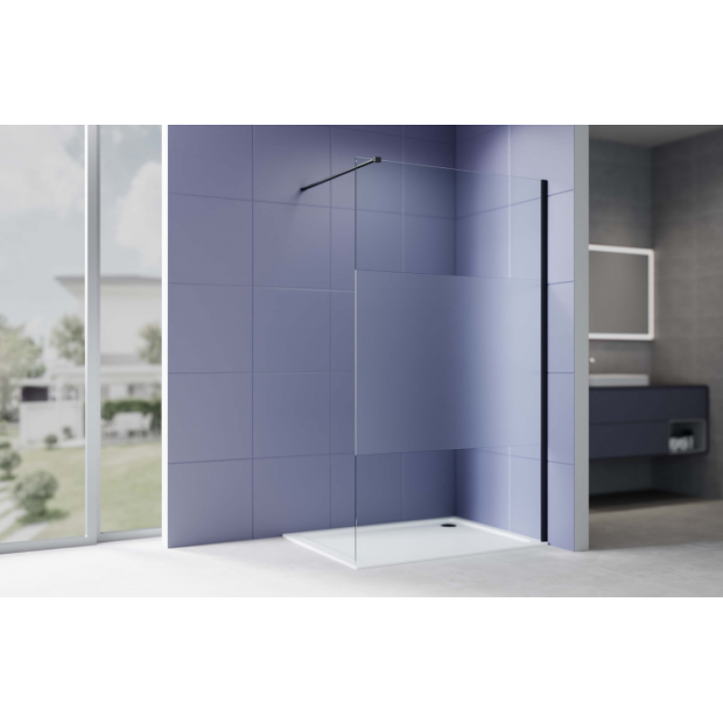 Душевая перегородка с держателем AQUATEK Walk in 900x2000 AQ.WI.090.3BL черный матовый/стекло прозрачное с матовой полосой*