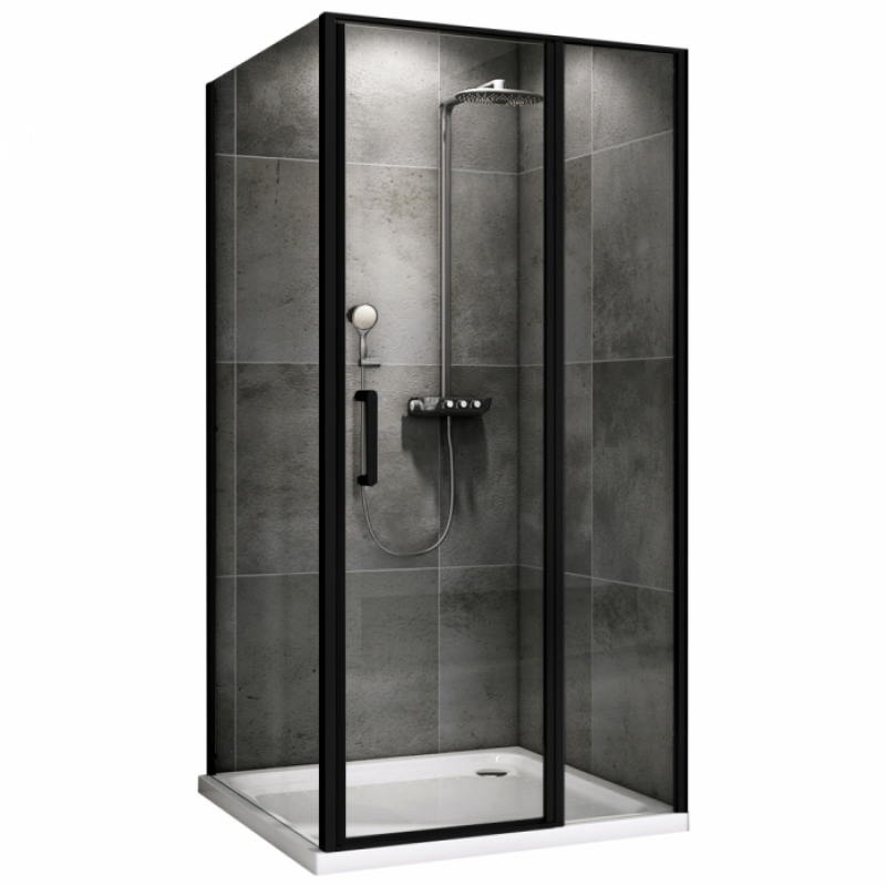 Тип: душевой уголокМонтаж: в уголМодификация: универсальнаяФорма: прямоугольнаяДлина: 110 смШирина: 80 смВысота: 195 смКоличество дверей: 1Конструкция дверей: распашнаяТип поддона: низкий, приобретается отдельноДоп. информация: металлическая ручкаМатериал полотна двери: стеклоИсполнение полотна двери: прозрачноеТолщина полотна двери: 6 ммМатериал профиля: металл  Цвет профиля: черный