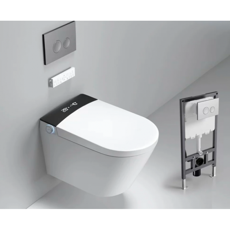 Электронный унитаз-биде подвесной с инсталляцией и черной матовой кнопкой Timo ТЕ-751B*