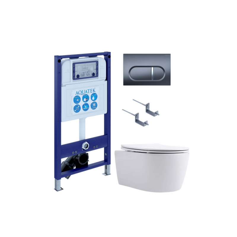 Инсталляция  Назначение: для подвесных унитазовМаксимальная нагрузка: 400 кгМетод крепления: в капитальную стену и полМежосевое расстояние под крепеж. шпильки: 23 / 18 смМонтажная глубина: 10 смМонтажная высота: 113 смМонтажная ширина: 51 см  Управление: механическоеРежим слива воды: 2 кнопки (эконом)Диаметр слива: 9 смМатериал рамы: стальЦвет рамы: синийУнитазМонтаж: подвеснойТип выпуска: горизонтальныйВид крепления: к стенеБезободковый: даРазмер: 525*360*260 ммСлив: двухрежимныйОрганизация смывающего потока: каскадный сливСистема антивсплеск: нетСиденье в комплекте: даСиденье микролифт: даКрепления в комплекте: даМатериал чаши: санфарфорЦвет: белыйКлавиша смываУстановка: фронтальнаяФорма: прямоугольнаяУправление: механическоеРежим слива воды: две кнопки (режим эконом)Материал: ABS-пластикЦвет: оружейная сталь матовый
