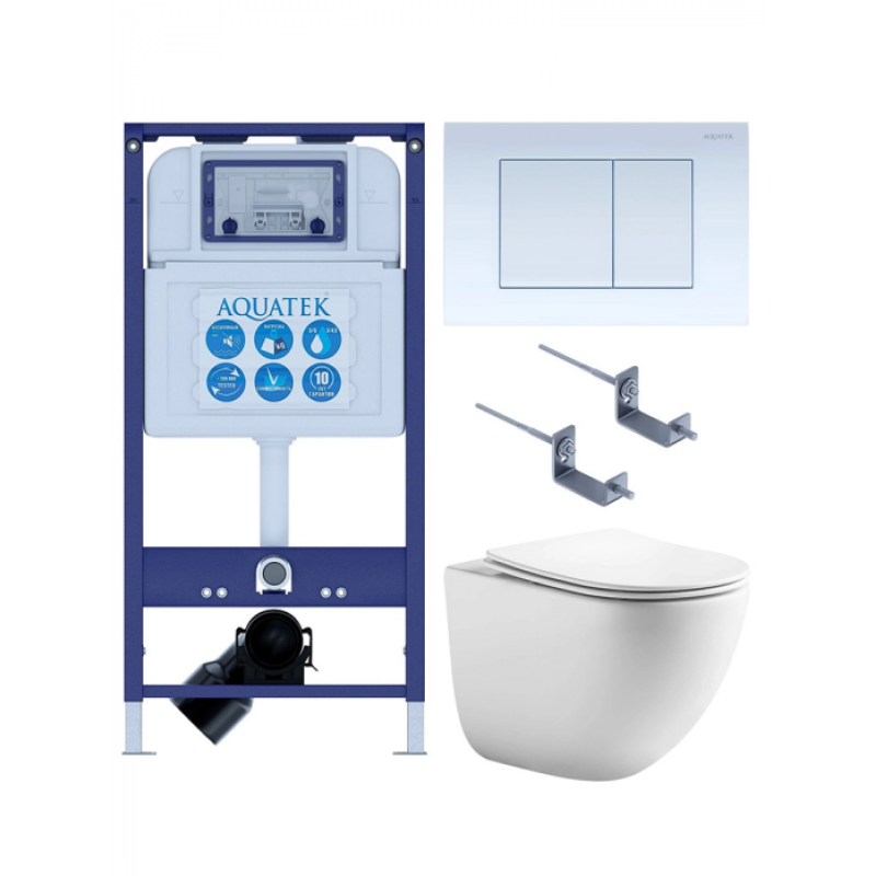Инсталляция  Назначение: для подвесных унитазовМаксимальная нагрузка: 400 кгМетод крепления: в капитальную стену и полРазмер:  1130х510х100 ммМежосевое расстояние под крепеж. шпильки: 23 / 18 смМонтажная глубина: 10 смМонтажная высота: 113 смМонтажная ширина: 51 см  Управление: механическоеРежим слива воды: 2 кнопки (эконом)Диаметр слива: 9 смМатериал рамы: стальЦвет рамы: синийУнитазКрепления: к инсталляцииМонтаж: подвеснойМежосевое расстояние: 180 ммКонструкция: безободковыйРазмер: 505*360*370 ммНаправление выпуска: горизонтальноеПодвод воды: скрытыйСистема смыва: ТорнадоКрышка-сиденье в комплекте: даСиденье с микролифтом: даСиденье легкосъемное: даМатериал: фарфорМатериал сиденья: дюропластЦвет: белыйПанель смываУстановка: фронтальнаяФорма панели: прямоугольнаяРазмер: 24.5 x 1.2 x 16.5 смУправление: механическоеРежим слива воды: две кнопкиМатериал:  пластикЦвет: белый