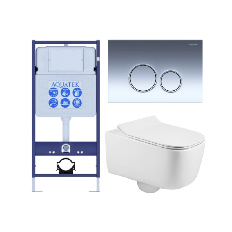 Комплект AQUATEK SET AQUATEK ЛУГАНО-018 4в1 (рама Standard INS-0000012+крепеж KKI-0000002+клавиша KDI-0000018+унитаз Лугано AQ2002-00 с сиденьем)*