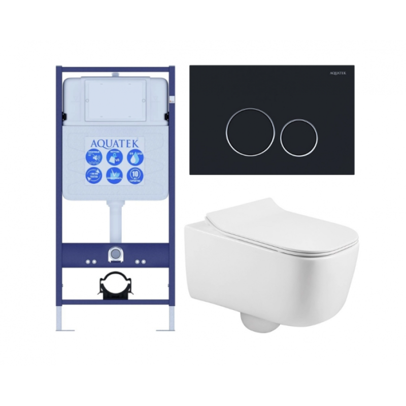 Комплект AQUATEK SET AQUATEK ЛУГАНО-020 4в1 (рама Standard INS-0000012+крепеж KKI-0000002+клавиша KDI-0000020+унитаз Лугано AQ2002-00 с сиденьем)*