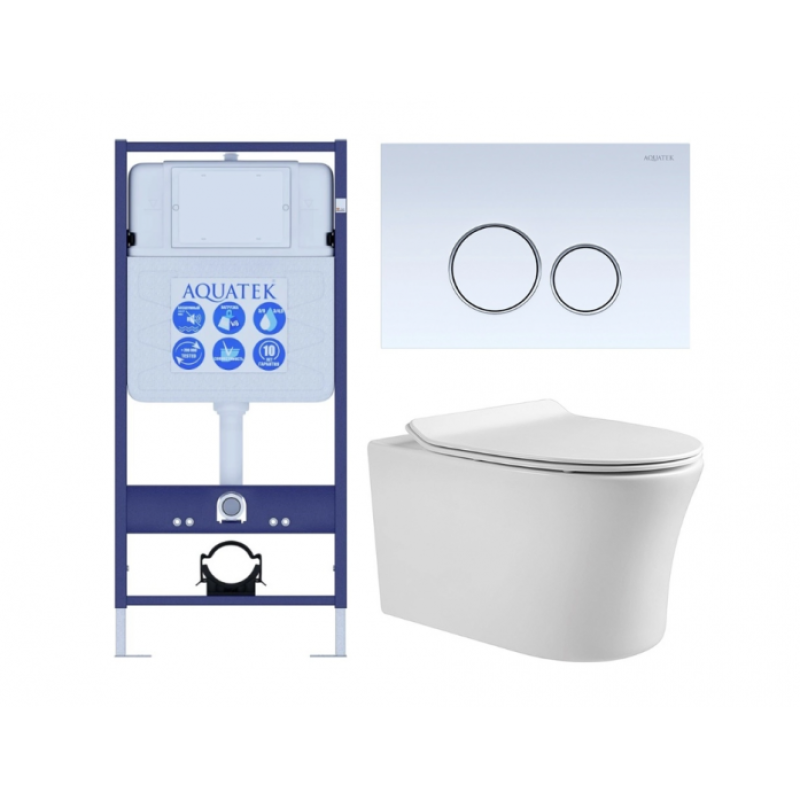 Комплект AQUATEK SET AQUATEK НИКА-015 4в1 (рама Standard INS-0000012+крепеж KKI-0000002+клавиша KDI-0000015+унитаз Ника AQ2009-00 с сиденьем)*