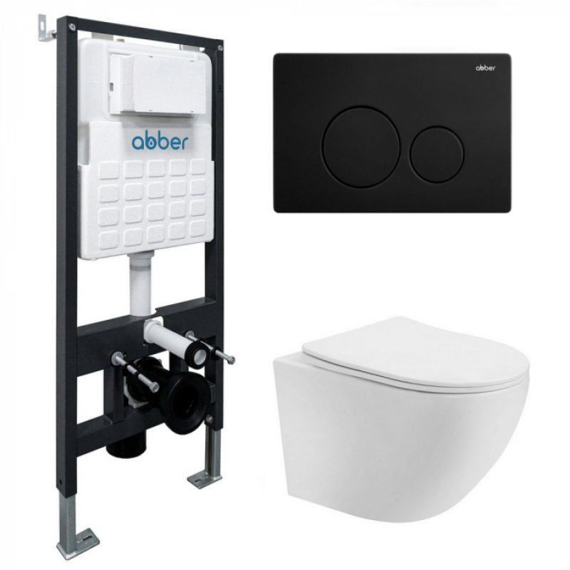 Комплект подвесной унитаз Abber Bequem AC1100T белый с инсталляцией AC0105 и кнопкой AC0121MB черный матовый AC1100T-AC0105-AC0121MB*