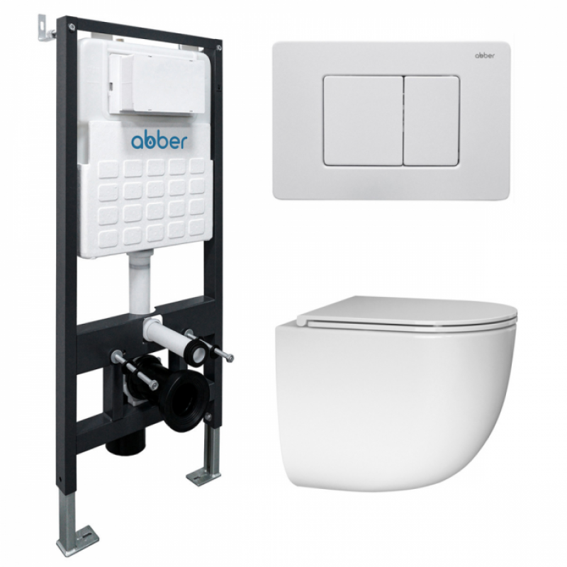 Комплект подвесной унитаз Abber Bequem AC1132TC белый с инсталляцией AC0105 и кнопкой AC0120MW белая матовая AC1132TC-AC0105-AC0120MW*
