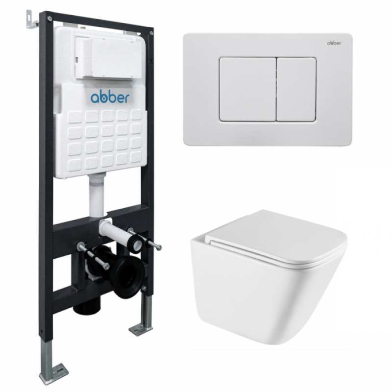 Комплект подвесной унитаз Abber Rechteck AC1219TC белый с инсталляцией AC0105 и кнопкой AC0120MW белая матовая AC1219TC-AC0105-AC0120MW*