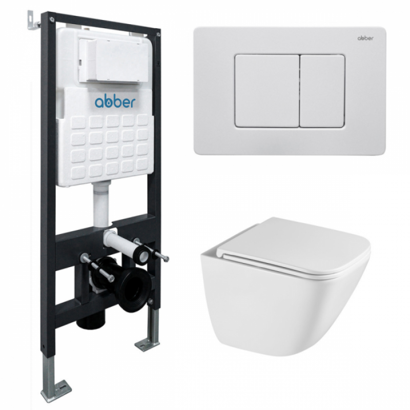Комплект подвесной унитаз Abber Rechteck AC1220TC белый с инсталляцией AC0105 и кнопкой AC0120MW белая матовая AC1220TC-AC0105-AC0120MW*