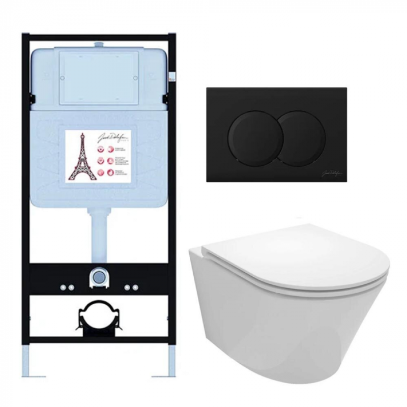 Подвесной унитаз c инсталляцией и клавишей смыва Jacob Delafon Rodin+ E21750RU-BL (E36495-NF+E36496-BL+EDY102+E23280)*