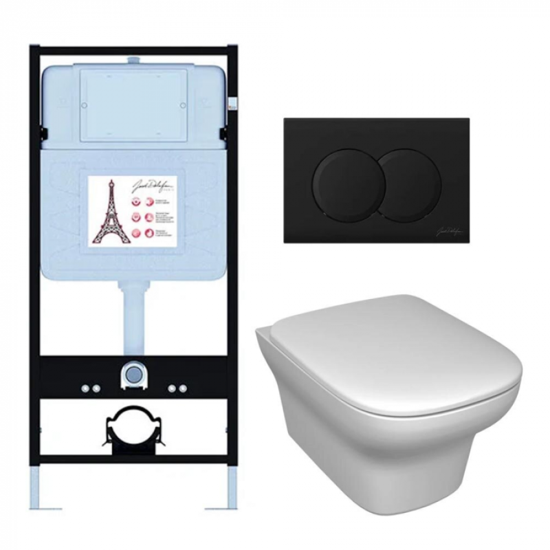 Подвесной унитаз c инсталляцией и клавишей смыва Jacob Delafon Vox E21747RU-BL (E36495-NF+E36496-BL+EDM102+E20142)*